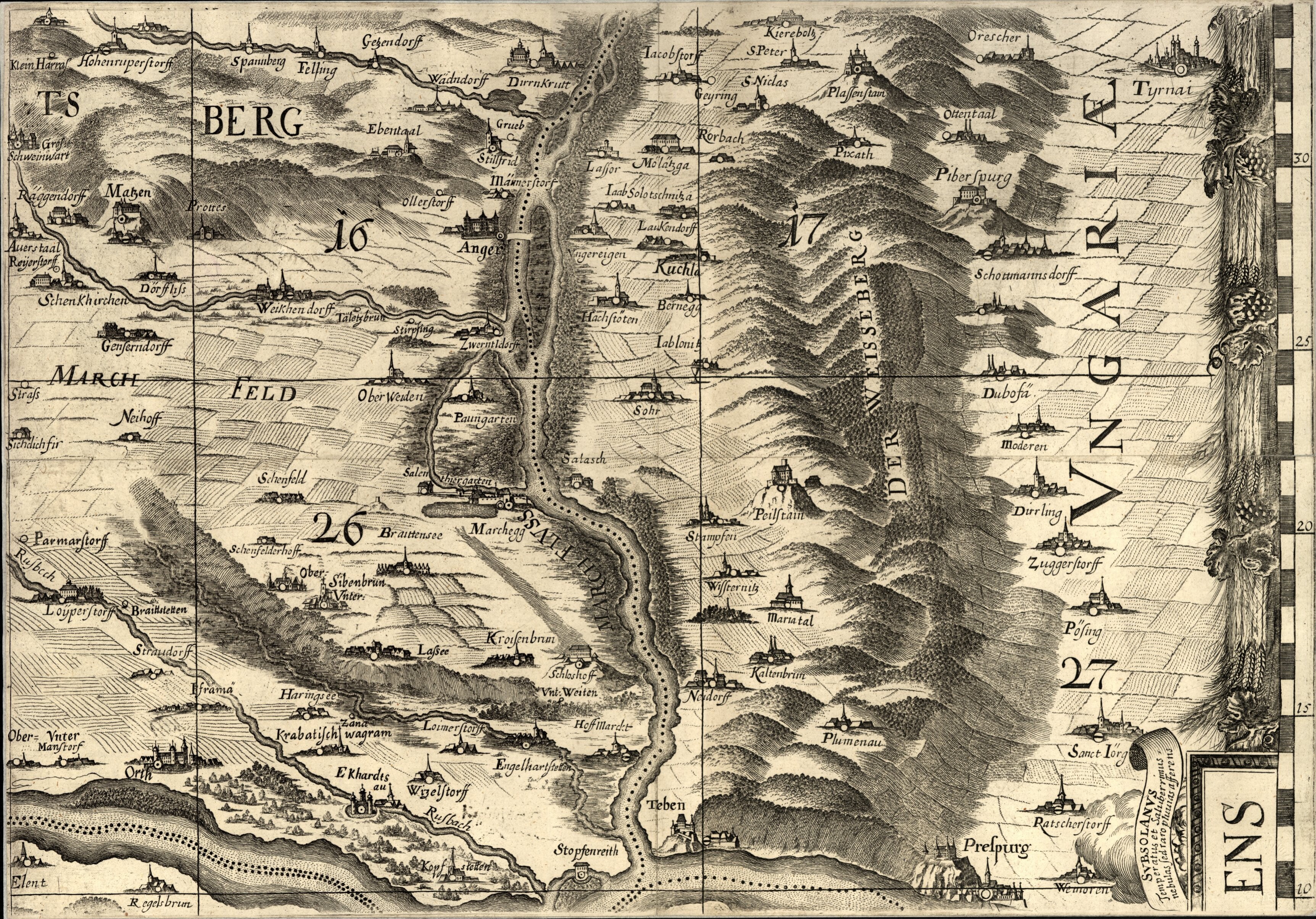 NiederösterreichLandeskundeKartographieniederösterreichische StändeÖsterreich unter der EnnsLandkarteLeopold I.HabsburgerHofburgRepräsentationPropagandaKarteDonauMarchUngarnMarchfeld