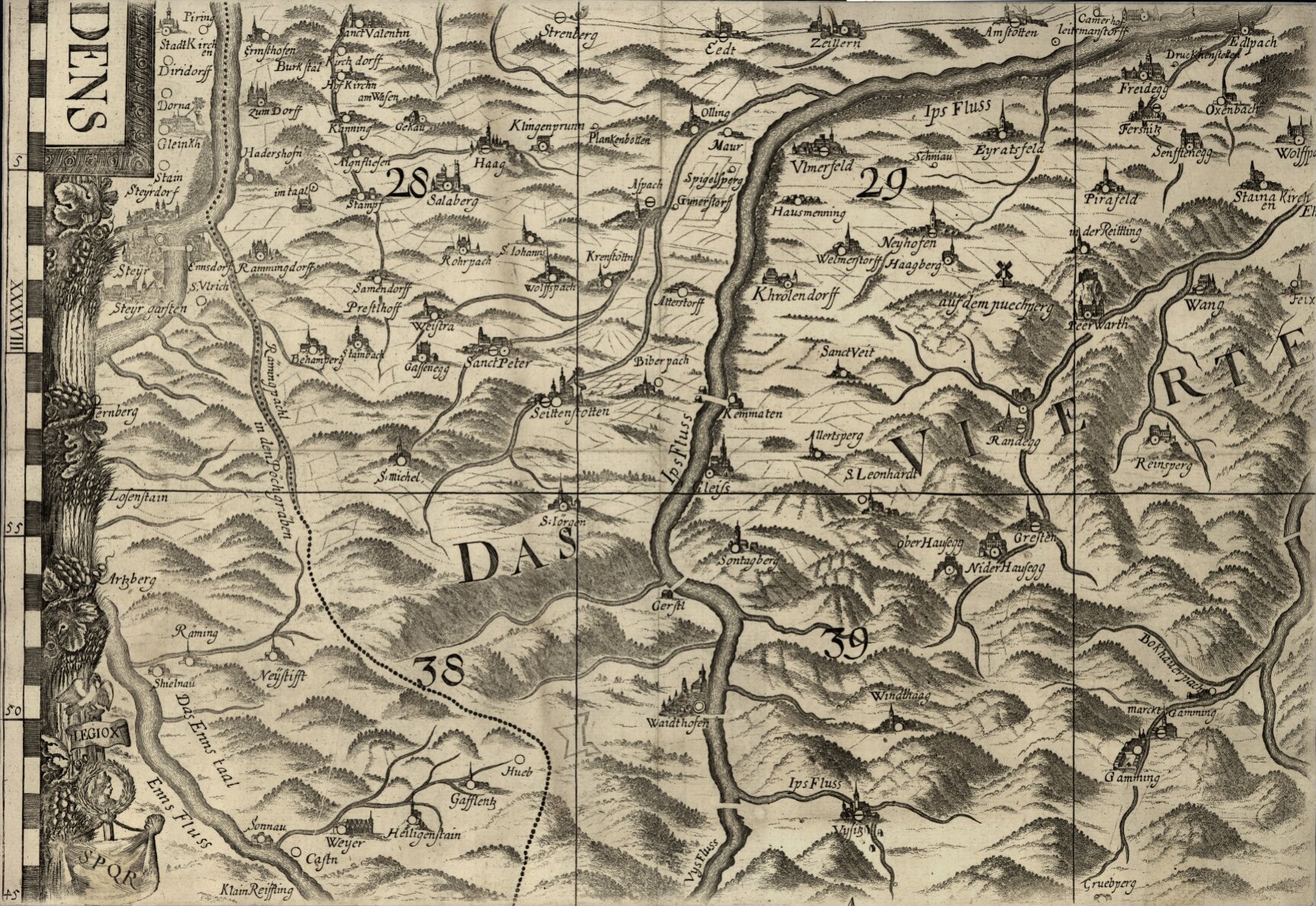 NiederösterreichLandeskundeKartographieniederösterreichische StändeÖsterreich unter der EnnsLandkarteLeopold I.HabsburgerHofburgRepräsentationPropagandaKarteMostviertelViertel ober dem WienerwaldYbbsEnnsEnnstalOberösterreich